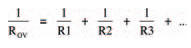 Similarly, there is a law of parallel resistors, by which the single equivalent resistance of a number of resistors connected in parallel is given by: